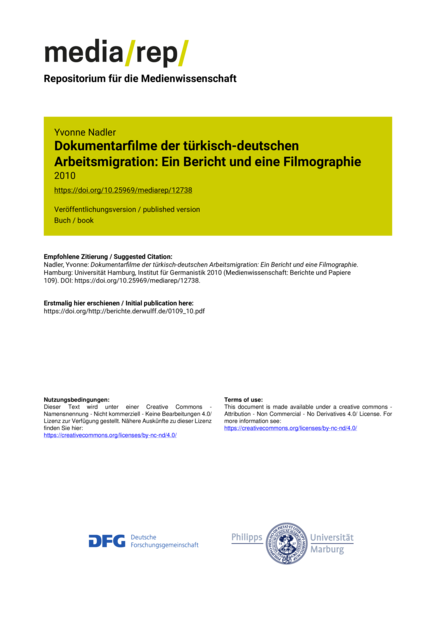 Dokumentarfilme der türkisch-deutschen Arbeitsmigration: Ein Bericht und eine Filmographie