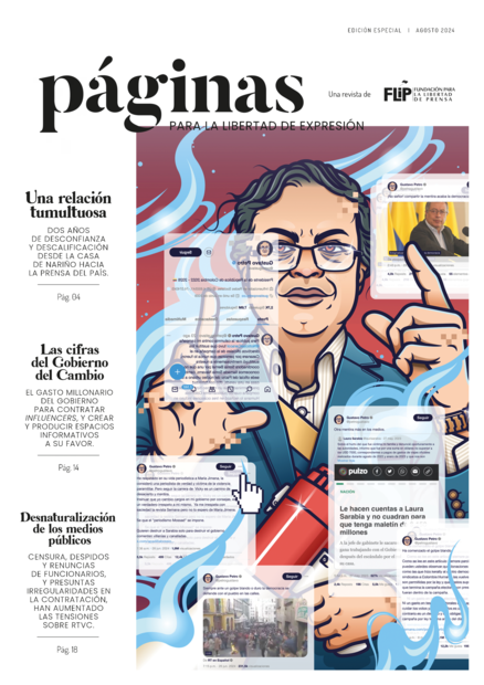 "A dos años de su mandato, la relación del presidente Gustavo Petro con la prensa ha estado marcada por la descalificación y la desconfianza en los medios de comunicación y en periodistas que considera incómodos. En contraste, su Gobierno creó nuevos canales de comunicación oficial y aumentó el presupuesto del sistema de medios público. De manera intermitente ha enviado señales —que no terminan de concretarse— de querer fortalecer a los medios alternativos y comunitarios, y ha incluido a influencers en su estrategia de comunicación. A diferencia de la actitud del presidente Iván Duque hacia la prensa —quien dividió el panorama mediático entre "amigos" y "enemigos" durante un periodo marcado por protestas contra sus políticas y su manejo de la crisis del COVID-19–, el actual Jefe de Estado considera que los medios de mayor influencia son adversarios políticos y prefiere comunicarse por X." (Página 5)
