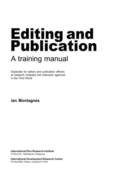 Editing and Publication: A Training Manual. Especially for Editors and Publication Officers at Research Institutes and Extension Agencies in the Third World