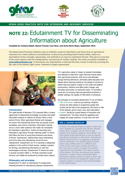Global Forum for Rural Advisory Services (GFRAS);World Agroforestry Centre (2016), 4 pp.