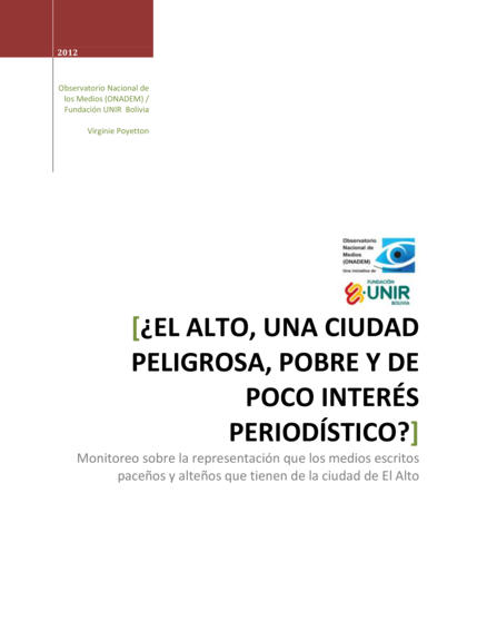¿El Alto, una ciudad peligrosa, pobre y de poco interés periodístico? Monitoreo sobre la representación que los medios escritos paceños y alteños tienen de la ciudad de El Alto