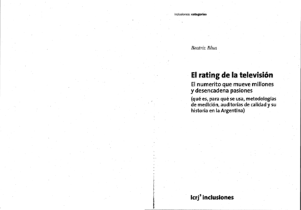"La idea de este libro pretende cumplir dos propósitos: por un lado desarrollar un aspecto didáctico para todos aquellos estudiantes de medios o productores de programas, que recién toman contacto con este indicador y hacerles saber, de manera simple, clara y básica, que es exactamente el rating de televisión, como se calcula, cuales son los diferentes aspectos de análisis, y cómo se utiliza, tanto desde el punto de vista de un medio televisivo emisor, como desde la perspectiva de un anunciante o agencia de publicidad. Por el otro lado, relatar todo lo que he aprendido en estos años: el mundo que gira en torno al rating, los mitos, prejuicios, verdades y mentiras sobre las diferentes metodologías de medición, muchas veces erroneamente idealizadas y otras injustamente criticadas. Así como también la calidad de las instituciones que realizan las mediciones. En otras palabras, explicar con propiedad lo estrictamente técnico y profesional, y alternarlo con la historia - tal como la he venido recopilando en mi memoria durante todos estos años - de como ha sido el camino recorrido por las empresas que se dedicaron a medir y comercializar el índice y el tortuoso mundo que rodea al rating." (Prólogo, página 9-10)