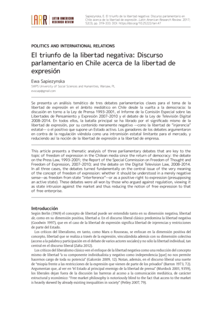 El triunfo de la libertad negativa: Discurso parlamentario en Chile acerca de la libertad de expresión