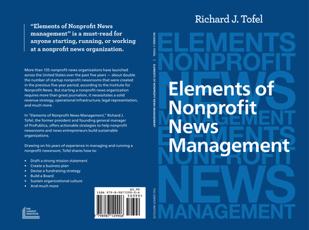 "Richard J. Tofel, the former president and founding general manager of ProPublica, offers actionable strategies to help nonprofit newsrooms and news entrepreneurs build sustainable organizations. Drawing on his years of experience in managing and running a nonprofit newsroom, Tofel shares how to: draft a strong mission statement; create a business plan, devise a fundraising strategy; build a board; sustain organizational structure; and much more." (Back cover)