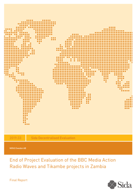"This evaluation covers two independent projects implemented by BBC Media Action in Zambia. Tikambe provides information to young people about sexual reproductive health and rights and youth-friendly services via different platforms. Radio Waves supports independent media as a platform for dialogue and accountability. The evaluation concludes that the projects are relevant and achieved important results. In the future, the projects would benefit from strengthening their participatory approach in project design, sustainability considerations in the organisational capacity development of media actors, vulnerability profile and outreach (Tikambe) and budget design transparency (Radio Waves)." (Back cover)
