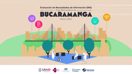 "La Evaluación de Necesidades de Información (INA) de la población migrante venezolana en el Área Metropolitana de Bucaramanga, Santander, se realizó entre noviembre de 2021 y marzo de 2022 bajo la metodología propia de Internews, en el marco del Programa Conectando Caminos por los Derechos de USAID. El INA se realiza con el propósito de comprender las necesidades de información de una población en riesgo de sufrir vulneraciones contra sus derechos, la forma como obtienen intercambia y utilizan la información, sus mecanismos de confianza y sus medios preferidos de comunicación e información." (Introducción)
