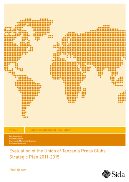"The Union of Tanzania Press Cubs, UTCP, is an umbrella organisation, which supports a total of 28 local Press Clubs all over the country. The organisation describes its vision as: “A democratic Tanzania fully embracing a free, independent and robust media”, and the mission is formulated as: “To create an environment that enables strong, efficient and effective Press Clubs in Tanzania which eventually contribute towards a democratic and just society.” The evaluation concludes that the UTPC does have the potential to contribute to a democratic development in Tanzania as described in the vision and mission statements. It is the only member based media organisation with a national coverage." (Back cover)
