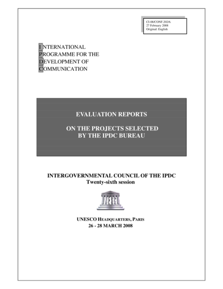 Evaluation Reports on the Projects Selected by the IPDC Bureau: Intergovernmental Council of the IPDC, Twenty-Sixth Session