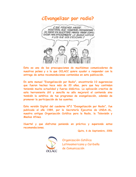 Quito: Organización Católica Latinoamericana y Caribeña de Comunicación (OCLACC) (1984), 46 pp.