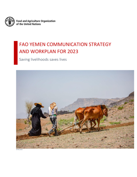 "This Communication Strategy takes a holistic approach to communication. Additionally, it takes a long-term view in implementing effective ways of influencing discourses within the information environment. The communication strategy underlines the fact that all FAO activities have an important information and communications component. As such, communications is not an adjunct or after thought activity but should be embedded in the planning, implementation and review of FAO activities in Yemen. This Communication Strategy is a living and working document, meaning that while it serves to guide overall communication, it is open to changes and adjustments in response to the sudden changes that characterise a fluid situation such as the one obtaining in Yemen. This document guides the office’s annual communication workplan and informs project-specific communication plans developed under projects and programmes implemented by FAO Yemen. The strategy aligns with FAO’s Corporate Communication Guidelines, FAO Yemen’s Plan of Action (2022 – 2024) and FAO’s Hand-in-Hand Initiative efforts to improve knowledge sharing on agricultural best practices, engage in data-driven development work and advance agricultural innovation to help small-scale food producers achieve better production and build better lives. A Communication workplan for 2023 is attached to this strategy document as an annexe. The workplan maps out communication priorities and activities for 2023, taking into consideration operational challenges, needs and gaps as well as the feasibility of communication activities with the available capacity of human resources." (Introduction)