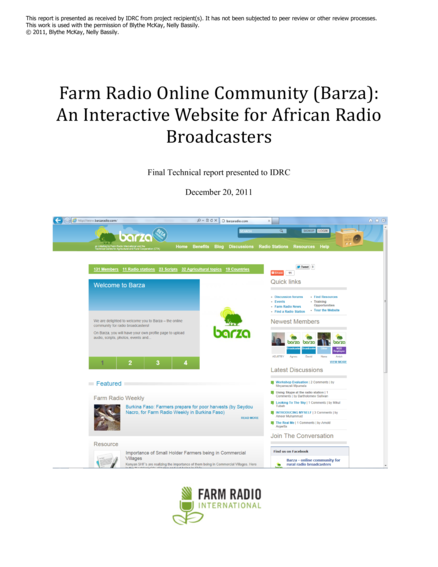 Farm Radio Online Community (Barza): An Interactive Website for African Radio Broadcasters