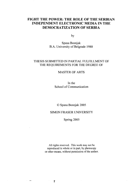 "This thesis presents the major contributions of the Serbian independent electronic media to the struggle for the democratization of Serbia throughout the 1990s. The thesis also examines some aspects of the transformation of the media in Eastern Europe in the 1990s and outlines several different theoretical approaches to answering the question: Can media influence social change? The thesis further describes the development of Serbian independent electronic media from small outlets, such as Radio B 92 and NTV Studio B, to a strong association of independent local radio and TV stations. Due to institutionalization and international support, the independent radio and TV stations not only survived, but became important parts of the civil resistance movement against Slobodan MiloSeviC's regime. Finally, in the second half of the 1990s, a wide coalition of Serbian independent media, NGOs and oppositional political parties succeeded in creating the conditions for the regime's overthrow." (Abstract)