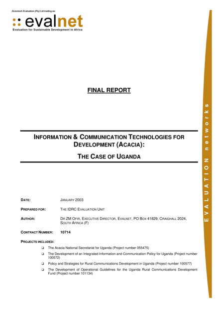 Final Report: Information and Communication Technologies for Development (Acacia). The Case of Uganda