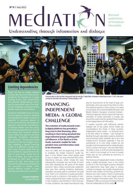 "The evolution of media towards mainly digital platforms has provoked a long crisis in their financing, often resulting in them being absorbed into large industrial groups seeking political influence. In the North as in the South, economic models for independent news and information need to be reinvented." (Page 1)