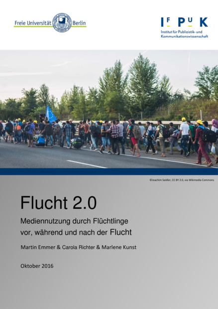 "Anhand einer repräsentativen Umfrage mit 404 Flüchtlingen, die vorwiegend aus Syrien, Irak, Afghanistan, Pakistan und Iran kamen, liefert die vorliegende Studie erstens Erkenntnisse dazu, wie sich Flüchtlinge in ihren Herkunftsländern, auf ihrem Fluchtweg und in Deutschland Informationen verschaffen und welchen Quellen sie vertrauen. Zweitens interessiert die aktive Nutzung von mobilen Medien zur Verbreitung von Informationen sowie zur Kommunikation mit anderen über die eigene Flucht. Drittens soll die Aufdeckung von Zusammenhängen der Mediennutzung mit Erwartungen, Bewertungen und Entscheidungen der Geflüchteten in Bezug zum Zielland Deutschland dazu dienen, konkretes Verhalten vor und während der Flucht besser verstehbar (und ggf. prognostizierbar) zu machen." (Executive summary)