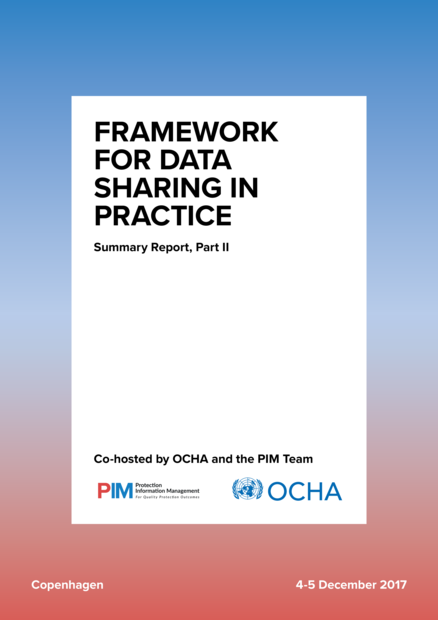 "A Framework for Data Sharing in Practice, Part II, is a collective outcome document from two meetings held in 2017, one in New York in May and a follow-up in Copenhagen in December. The meetings were held with support from OCHA’s Centre for Humanitarian Data. The objective of these meetings was to develop a framework for data sharing by which the humanitarian community can facilitate safe, responsible, and purposeful data and information sharing for stronger humanitarian response and protection outcomes. The December meeting brought together practitioners and thinkers from HHI, NRC, Netherlands Red Cross, IRC, IOM, WFP, JIPS, DRC, OCHA, ProCap, ICRC, UNICEF, and UNHCR who worked to further refine key elements of the Framework for Data Sharing in Practice. The first part of this document is a report on the discussions and agreement arising out of the December working meeting as well as the collaborative review of this document. The second part of this document presents the results of this work, offering the Framework for Data Sharing in Practice (hereafter the ‘Framework’). The document concludes with an annex on ‘Shared Definitions and Concepts’ which defines a minimum set of terms required to support a normative discussion on data and information sharing." (Page 1)