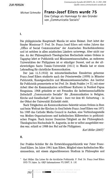 Franz-Josef Eilers wurde 75: Eine Collage als Hommage für den Gründer von "Communicatio Socialis"