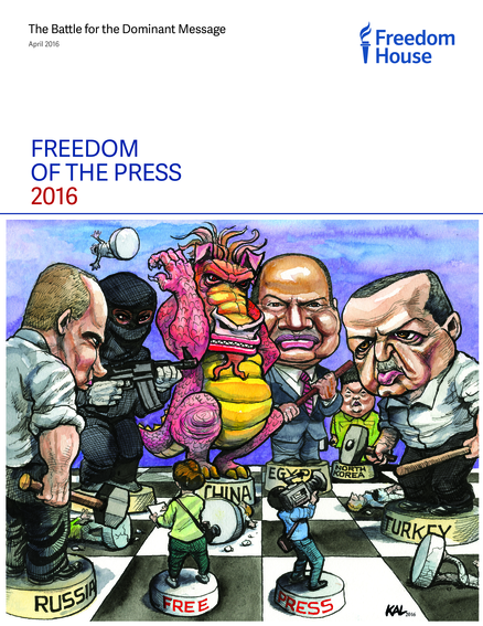 "Global press freedom declined to its lowest point in 12 years in 2015, as political, criminal, and terrorist forces sought to co-opt or silence the media in their broader struggle for power. The share of the world’s population that enjoys a Free press stood at just 13 percent, meaning fewer than one in seven people live in countries where coverage of political news is robust, the safety of journalists is guaranteed, state intrusion in media affairs is minimal, and the press is not subject to onerous legal or economic pressures. Steep declines worldwide were linked to two factors: heightened partisanship and polarization in a country’s media environment, and the degree of extralegal intimidation and physical violence faced by journalists. These problems were most acute in the Middle East, where governments and militias increasingly pressured journalists and media outlets to take sides, creating a “with us or against us” climate and demonizing those who refused to be cowed." (Page 1)