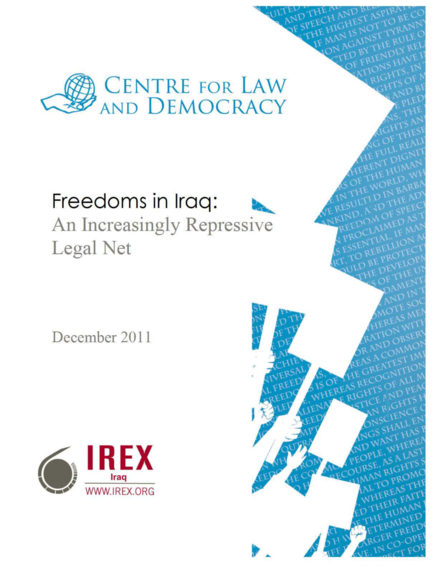 "This report reviews five pieces of legislation affecting the freedoms of assembly and expression that have been introduced in recent years in Iraq. Of these, only one, the Journalists Rights Law (Journalist Law), has actually been passed into law, in August 2011. The other four – the draft Commission of Media and Communication Law (draft CMC Law), the draft Informatics Crimes Law (draft Internet Law), the draft Political Parties Law (draft Parties Law) and the draft Law of Expression, Assembly, and Peaceful Protest (draft Assembly Law) – have not yet been formally adopted as laws. Together, the five laws cover a wide range of issues including restrictions on the content of what may be published or broadcast, whether over the airwaves or the Internet or via some other media, the establishment of political parties, how to apply to hold an assembly or demonstration, restrictions on such events, the overall system for regulating broadcasting, including the oversight body and the regimes for licensing and controlling content, and special rules for journalists. This report assesses the rules contained in these laws against constitutional and international human rights standards, in particular relating to freedom of assembly and expression." (Introduction, page 3)