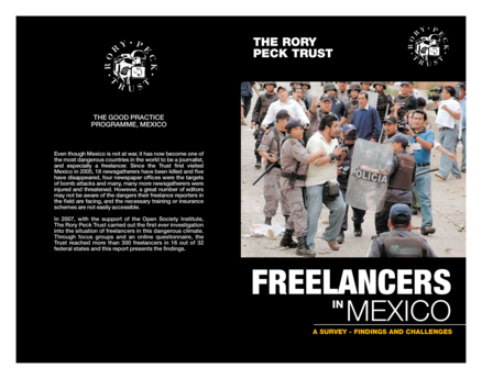 "Even though Mexico is not at war, it has now become one of the most dangerous countries in the world to be a journalist, and especially a freelancer. Since the Trust first visited Mexico in 2005, 18 newsgatherers have been killed and five have disappeared, four newspaper offices were the targets of bomb attacks and many, many more newsgatherers were injured and threatened. However, a great number of editors may not be aware of the dangers their freelance reporters in the field are facing, and the necessary training or insurance schemes are not easily accessible. In 2007, with the support of the Open Society Institute, The Rory Peck Trust carried out the first ever investigation into the situation of freelancers in this dangerous climate. Through focus groups and an online questionnaire, the Trust reached more than 300 freelancers in 16 out of 32 federal states and this report presents the findings." (Back cover)