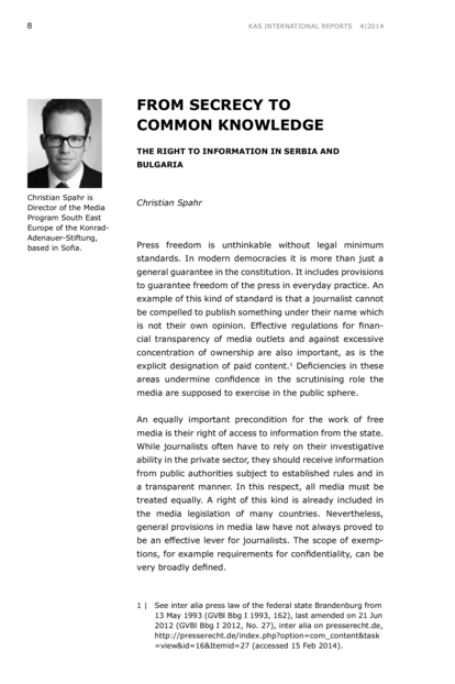 From Secrecy to Common Knowledge: The Right to Information in Serbia and Bulgaria