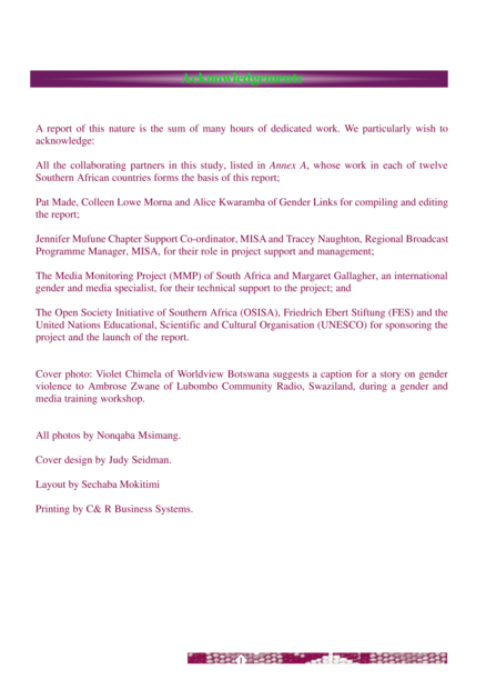 Johannesburg: Media Institute of Southern Africa (MISA);Gender Links (2003), 72 pp.