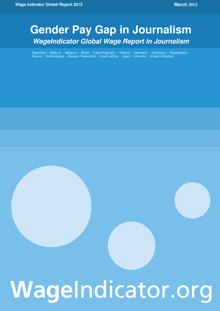 "The main purpose of the first Wage Indicator Global Wage Report – Gender Pay Gap in Journalism is to compare international and gender wage differentials for the journalist workforce. In addition to wages comparison, other important areas of journalists’ employment are studied, namely: (a) employee benefits, (b) working hours, (c) satisfaction with various aspects of job, (d) and satisfaction with life as a whole. Some of the main findings include: (a) Median gross wages of journalists range from 458 international dollars ($) in Indonesia to 3705$ in Germany across the studied countries (b) In 14 out of 16 studied countries male wages dominate female wages. In fact, male wages exceed female wages in all 16 studied countries as soon as we account for the differences in characteristics between men and women, that is, calculate equivalent pay gaps for comparable men and women. (c) Equivalent pay gap (accounting for differences in characteristics), disadvantaging female journalists, is largest in Belgium (-25%), Indonesia (-22%) and the Netherlands (-20%); the smallest equivalent pay gaps are observed in the Czech Republic (-5%) and Brazil (-9%)." (Executive summany)