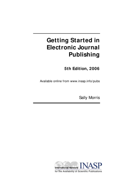 "The 5th edition of a popular guide that provides an overview of the potentials and pitfalls of electronic journal publishing. While not specifically written for an African audience, it is an excellent resource for African journal editors and publishers who are contemplating switching to an electronic environment. It introduces all the issues that will need to be considered before taking such a step. This includes a discussion of the benefits and challenges of electronic publishing; the decisions that will have to be made when changing to an online (or print/online) publication; the hosting issues involved; licensing considerations; issues relating to open access; the changes that would be required in editorial procedures, sales and marketing; and the likely costs in terms of both time and money/people, and how these costs might be recouped. It also offers a range of sales models for online journals and step-by-step guidelines how to plan for a switch to online publication." (Hans M. Zell, Publishing, Books & Reading in Sub-Saharan Africa, 3d ed. 2008, nr. 2478)