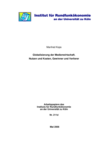 Köln: Institut für Rundfunkökonomie an der Universität zu Köln (2006), 66 pp.