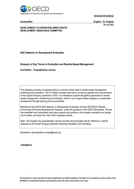 Paris: OECD Development Assistance Committee (DAC), 2nd ed, prepublication English version (2022), 30 pp.