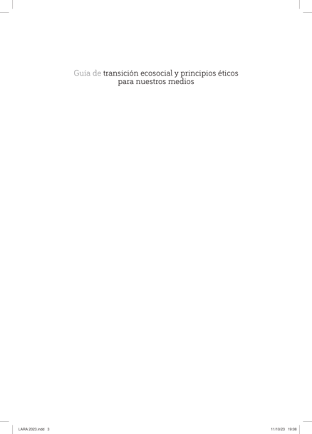 "Guía de transición ecosocial y principios éticos para nuestros medios” es un manual de redacción y valores que busca inspirar a las personas lectoras a través de principios éticos narrativos relacionados con la práctica del periodismo en los medios audiovisuales y en las prácticas de transmedialidad. Este trabajo recoge narrativas o formas en las que se debería informar sobre asuntos fundamentales en torno a los que gira gran parte de la información de actualidad y que requieren un tratamiento adecuado, crítico y reflexivo. Parte de la idea fundamental de que la comunicación es un eje transversal de transformación y transiciones así como de la importancia de construir a partir de lo local, desde la proximidad. La guía se conforma en torno a cinco grandes temas de debate o bloques: Transición ecosocial; Perspectiva de género; Discursos de odio, Migraciones y grupos minorizados; Menores; y Discapacidades. El manual se completa con una sucinta guía en forma de anexo, un glosario de términos y algunas recomendaciones bibliográficas." (Descripción de la casa editorial)
