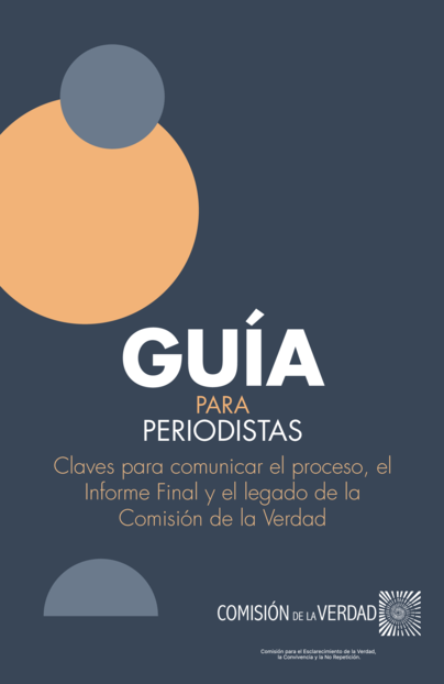 "Los medios de comunicación son grandes aliados en la sensibilización y apropiación del legado de la Comisión de la Verdad. El Informe Final brinda la oportunidad de difundirlo a través de una variedad de formatos innovadores que vayan más allá del registro de historias. Los contextos explicativos que incluye el Informe Final se convierten en información novedosa para desarrollar durante un largo tiempo. Al momento de contrastar la información es recomendable escuchar y dar cabida a todas las voces. Procurar un relato humanizante. Ir más allá de lo evidente. Evidenciar los factores de persistencia del conflicto." (Algunas sugerencias y oportunidades periodísticas para el abordaje del Informe, página 209)