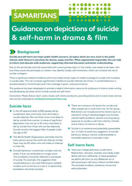 Guidance on Depictions of Suicide & Self-Harm in Drama & Film