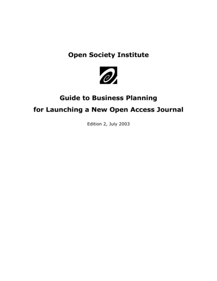 Guide to Business Planning for Launching a New Open Access Journal