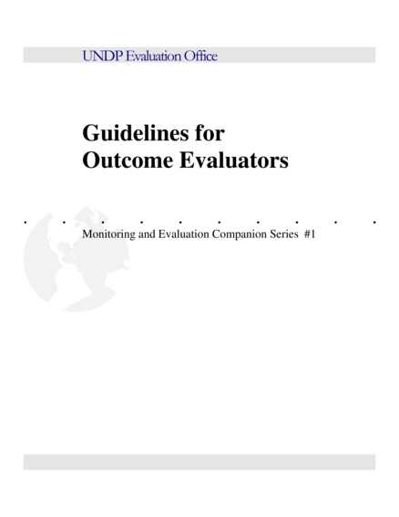 "This publication, Guidelines for Evaluators, is the first in the companion series to the Handbook on Monitoring and Evaluating for Results. The Handbook provides an overall context for results-based monitoring and evaluation and reviews tools and techniques for planning and managing monitoring and evaluation activities. The Handbook, however, is primarily directed to programme managers. This publication is specifically for those who actually conduct evaluations. It complements the Handbook by providing guidance on outcome evaluations as they relate to the evaluators. Guidelines for Evaluators presents a conceptual review of outcome evaluation, identifies key differences between outcome and project evaluations, and provides a framework methodology for conducting outcome evaluations. It also includes a sample outline for an outcome evaluation report." (Introduction, page 5)