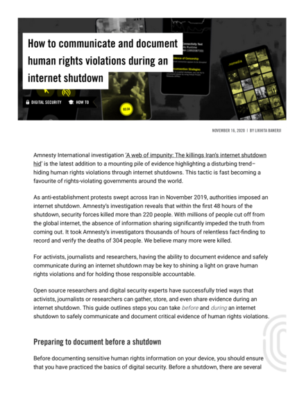 How to Communicate and Document Human Rights Violations During an Internet Shutdown
