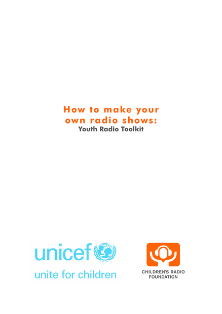 "This Youth Radio Toolkit will help refresh your radio knowledge. We will help you produce your own radio show, from start to finish. We’ll begin with choosing a topic, researching, recording and wrapping up with learning how to get your show out there in the community. In this toolkit, we’ve put together all the important elements of making a good radio show: radio skills recap; how to prepare for your radio show; how to produce the content for the show; what to do when you’re live on air; how to get your show out there; eight sample radio shows." (Page 4)
