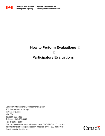 "A quick read of this Guide will acquaint you with the value of participatory evaluations and what can be achieved through meaningful stakeholder involvement. A focus is brought to what the Agency has learned about implementing participatory activities, and what practices have proven to work well. Over the past ten years, the value of engaging key stakeholders has become critically linked to the achievement of downstream performance results. Experience has shown that if stakeholders have participated in the development of results, they are more likely to contribute to their implementation. However, it should be recognized that additional effort (and costs) are typically associated with expanded stakeholder involvement." (Page 1)