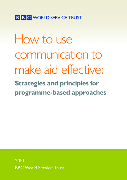 "This review from the BBC World Service Trust examines why and how the role of communication can be mainstreamed into programme-based approaches (PBAs), one of the main methods now used by bilateral donors to disburse funding to developing countries. The review, which has been developed in association with (but is published independently of) the Swedish International Development Cooperation Agency (Sida), is intended for three types of audience: communication and media practitioners who work in support of development objectives, or who have a link with the development and aid sectors; donors and developing country policymakers concerned with increasing public understanding and engagement within developing countries with the development system; and country-based organisations that provide technical support and conduct advocacy to prioritise communication and media issues among donors and governments." (Executive summary)