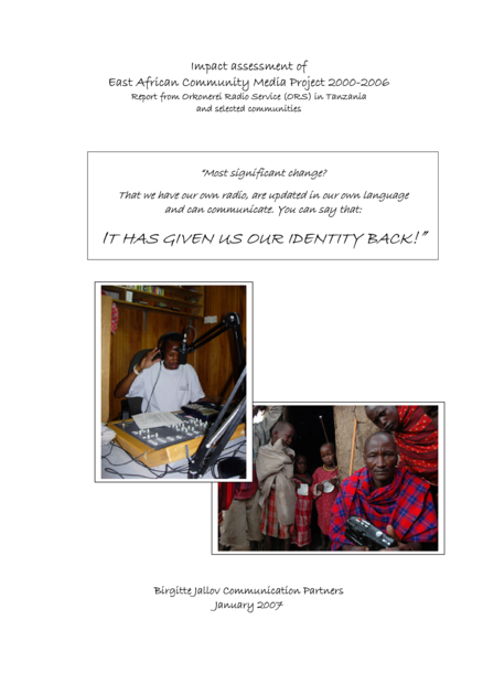 Impact Assessment of East African Community Media Project 2000-2006: Report from Orkonerei Radio Service (ORS) in Tanzania and Selected Communities