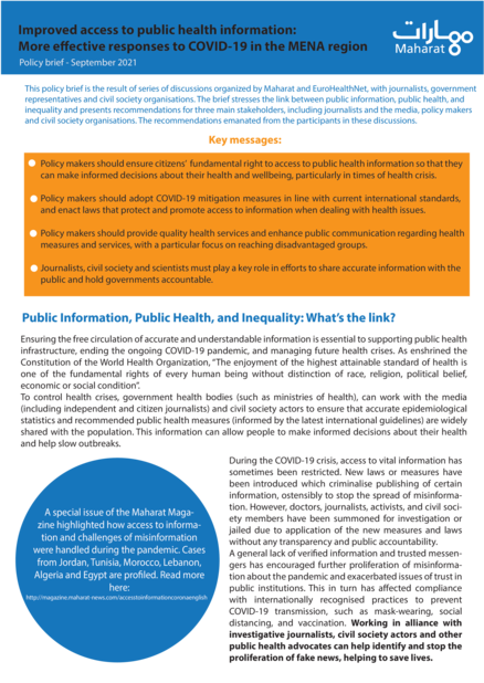 Improved Access to Public Health Information: More Effective Responses to COVID-19 in the MENA Region