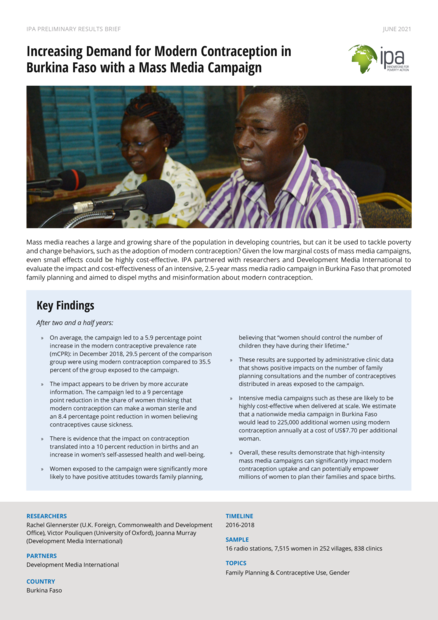 Increasing Demand for Modern Contraception in Burkina Faso with a Mass Media Campaign