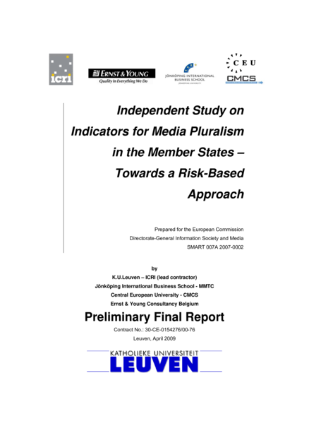 "The outcome of this study is a prototype for a European Media Pluralism Monitor – a riskbased, holistic, user-friendly and evolving monitoring tool that includes indicators of a legal, economic and socio-demographic nature. In order to account for the multi-faceted character of media pluralism, these indicators relate to various risk domains, including media ownership and/or control, media types and genres, political pluralism, cultural pluralism and geographic pluralism. Furthermore, they cover the various stages of the media value chain: supply, distribution and use. The Monitor offers a diagnostic, not a prescriptive tool on the basis of established risk management strategies. Its purpose is to facilitate the collection of empirical data on various risks for media pluralism given the particular economic, sociodemographic and legal situation in each Member State." (Page viii)