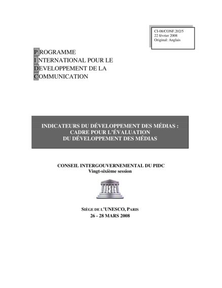 Paris: UNESCO, Programme International pour le Développement de la Communication (PIDC) (2008), 65 pp.