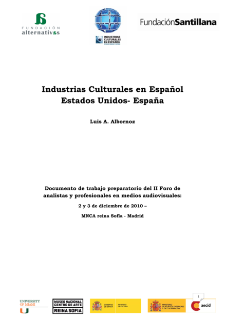 "Este documento presenta un panorama general de la presencia "latina" o "hispana" y del mercado medático en español en los Estados Unidos. Además introduce brevementa a la presencia cultural de España en Estados Unidos y los resultados de dos Foros de Industrias Culturales Latinas." (commbox)