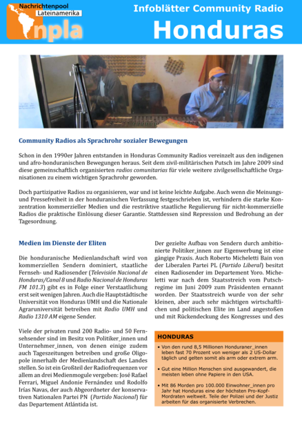 Infoblätter Community Radio: Honduras