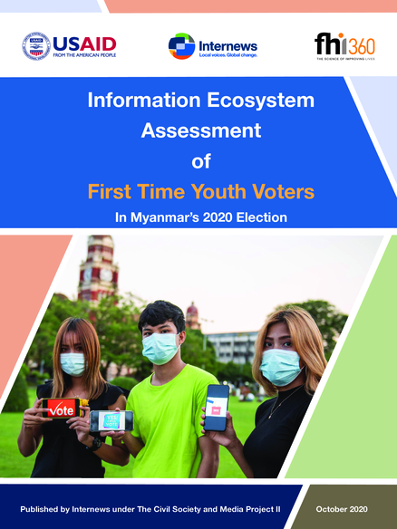 "Facebook is “best” source of information for elections, but television is still most trusted Among irst time youth voters, 83% of survey respondents cited Facebook as the best channel to receive elections information. In Myanmar, Facebook and the Internet are virtually interchangeable. Key Informant Interviews (KII) and Focused Group Discussions (FGD) confirmed that information flows fluidly among Facebook users, who receive and share information in their respective common interest groups on Facebook, highlighting the important role of informal social media networks, which function as information sharing mechanisms. A few qualifying facts add more nuance to this finding: 1) the online survey was distributed through Facebook, which selfselects Facebook users; 2) the emergence of COVID-19 has increased Facebook use and the number of Facebook users; 3) respondents and interviewees were well aware of disinformation common to the platform, diluting their trust in information received via social media [...] Traditional media still plays a central role in inclusive voter education/elections outreach. While social media use is now widespread, survey respondents and interviewees still cited television, print and radio as main sources of information. 49% of respondents still regularly read the newspaper, 65% still watch TV, and 36% still listen to the radio. Moreover, insights from interviews and FGDs show that voters in Rakhine, Chin and Shan, affected by Internet outages, those in rural areas with limited access to Internet and digital communications infrastructure, and internally displaced persons may be excluded from information distributed solely on social media. Though traditional media is essential to inclusive quality information, this sector, especially those at the local and regional level, is struggling to survive financially ..." (Summary of key findings)