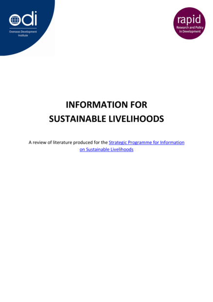 Information for Sustainable Livelihoods: A Review of Literature Produced for the Strategic Programme for Information on Sustainable Livelihoods