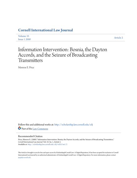 "The international mission, as U.S. and Western representatives saw it, was to reconstruct a viable multi-ethnic media, as well as to prevent further conflict. NATO was seeking to build, under the Dayton Accords, a plural society out of pieces that seemed fractured beyond repair. The OHR believed that a pluralistic, peaceful media was an indispensable part of the rebuilding process. The Office proclaimed its desire to "use the opportunity to remove one of the most serious obstacles bedeviling our efforts to re-establish civil society in Bosnia" - the fact that the media was ethnically based.358 NATO and OHR actions must be judged after a reasonable period of time elapses to see if a more democratic Bosnia-Herzegovina, supported by the pluralism that comes from a free and independent press, emerges. Still, one of the great dangers of information intervention is that it provides apparent democratic justification for any nation to use its police power to close down media outlets. Each time the international community intervenes to shut down a media outlet that it does not like, the line between information intervention and censorship becomes blurred. The real test is not only whether an information intervention transforms a society but also whether the intervention comports with the spirit of democratic change. Ends can justify means, but it is helpful if the means themselves are compatible with those ends." (Conclusion, page 111-112)