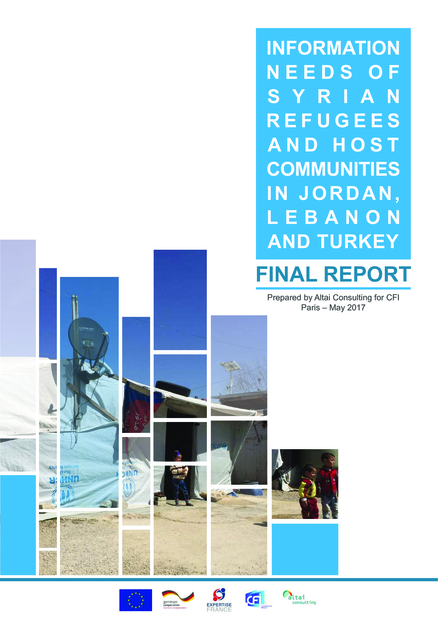 "This report presents the result of a quantitative survey carried out in March 2017 using a representative sample of 1104 individuals (Syrian refugees and host community members over 12 years old), weighted for location, gender and age, across the three main host countries for Syrian refugees (Jordan, Lebanon and Turkey). Some results are presented aggregated on this whole population (with a ratio of 70% Syrian refugees / 30% of host communities), while others are presented in a segregated way (refugees compared to host communities), or by various other break-downs mentioned throughout the report.